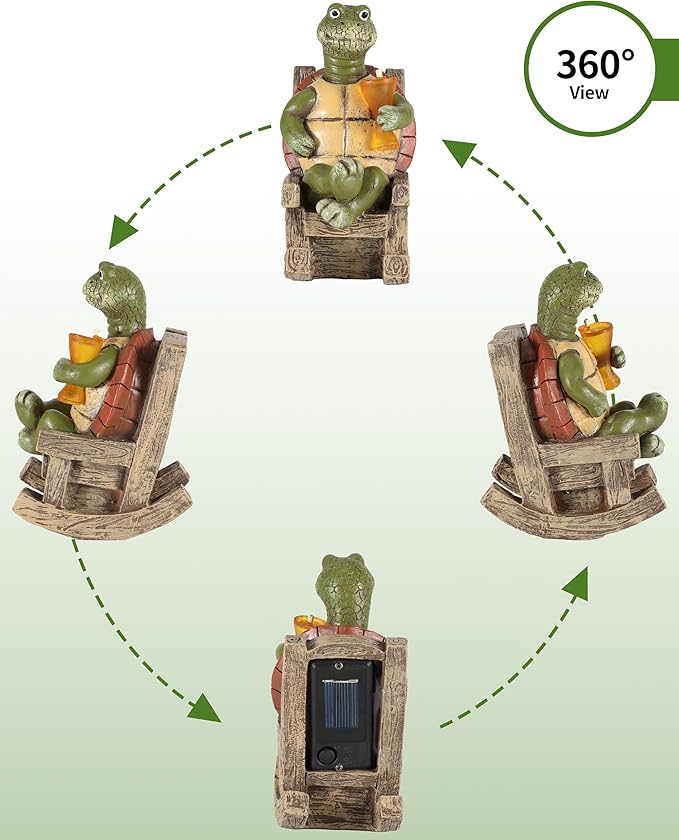 • 🍹 Glowing Cup Feature: At night, watch as the turtle’s cup magically lights up, creating a whimsical ambiance in your outdoor space.