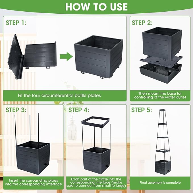• STURDY TRELLIS SUPPORT: this raised bed planter is constructed of a 5 Gal capacity planter box with a 48" trellis on top which offers great support and ample space to grow a variety of your favorite vine flowers or climbing vegetables ,tomato planter requires no screws and special tools, also no need to read complicated assembly instructions, very easy to assemble and set up. Meanwhile tomato planter can be interconnected and extended to meet your various DIY requirements