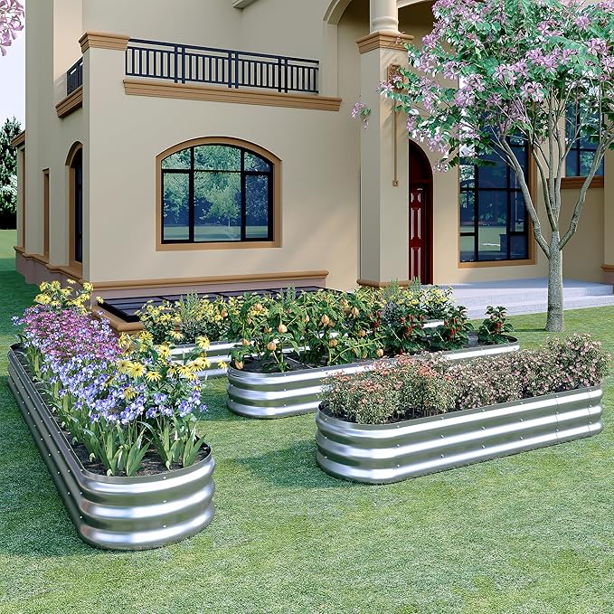 KFN 2pcs Galvanized Raised Garden Bed,Raised Garden Bed Kit-Oval Metal Flower Box,Large Planter Vegetable Box Outdoor,Planting for Vegetables,Flower,Herb,6FT,0.7mm