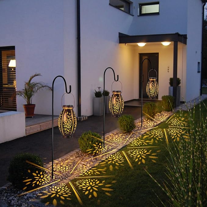 • 【Gorgeous Design/2pack Lanterns】-- Our pearlstar outdoor solar lanterns feature a vintage copper design with exquisite hollow patterns that emit a soft golden light at night, creating dynamic and beautiful patterns. They're a gorgeous and unique addition to any outdoor garden or yard.