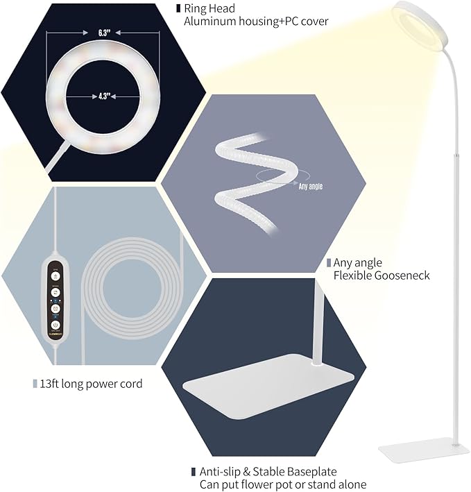 • 【Thoughtful Details】 The stable base will prevent the grow light from tipping over. The soft anti-slip pad underneath the base will protect the floor from damage. The power cord is upgraded to 13 ft long, suitable for more application scenarios .