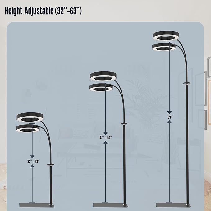 • 【Height Adjustable】Compared to traditional grow lights, our latest grow lamp features a detachable three-section design that is easy to install and can be adjusted to heights of 32/47/63 inches. The lamp head able to rotate 360 degrees. The flexibility ensures that your plants receive more even and effective light, allowing them to grow better.