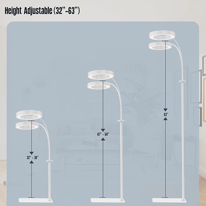 • 【Height Adjustable】Compared to traditional grow lights, our latest grow lamp features a detachable three-section design that is easy to install and can be adjusted to heights of 32/47/63 inches. The lamp head able to rotate 360 degrees. The flexibility ensures that your plants receive more even and effective light, allowing them to grow better.