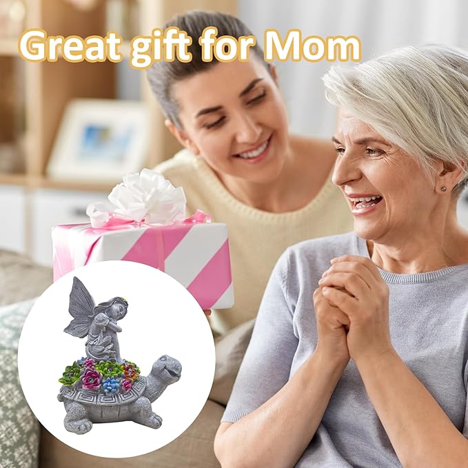 Solar Garden Statue Angel and Turtle,Figurines Outdoor Decor,Outdoor Solar Statue with LED Lights for Yard,Patio,Lawn Art Decoration,Housewarming Gift