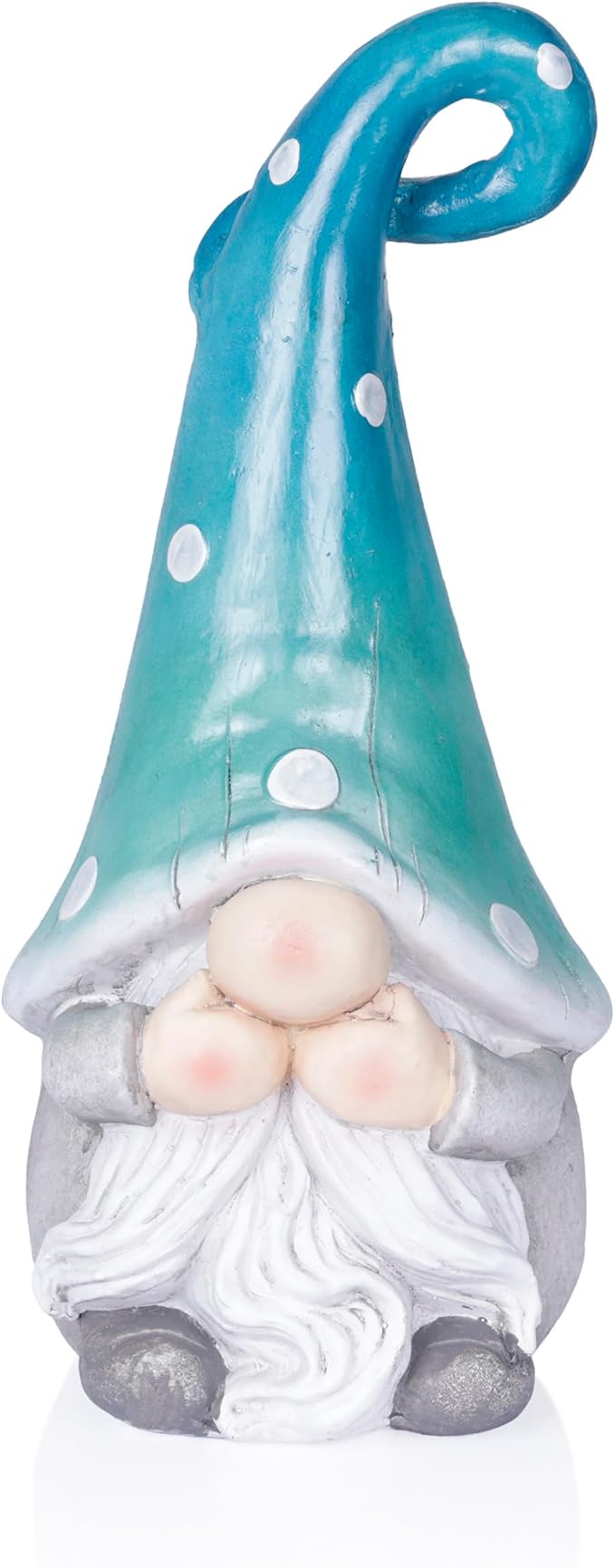 • CHARMING GARDEN GNOME: Add personality and charm to your outdoor space with this adorable gnome statue. The Speak No Evil design, paired with its friendly face and turqoise polka dot hat, brings a fun and quirky touch to any garden or patio.