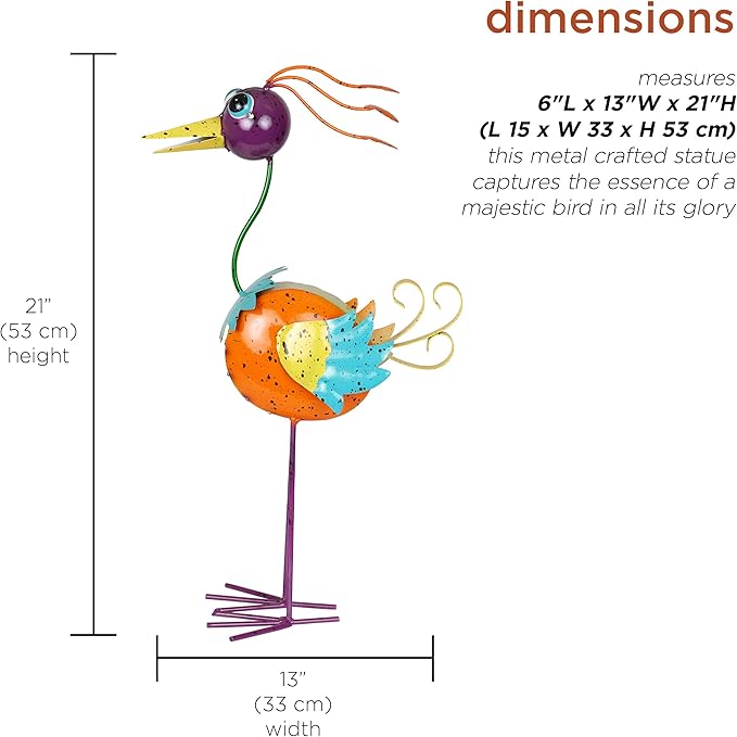 • STRIKING LAWN ORNAMENT: Elevate your outdoor decor with the Quirky Metal Rainbow Bird Decor, a captivating piece of garden decor that adds a touch of farmyard charm to any space