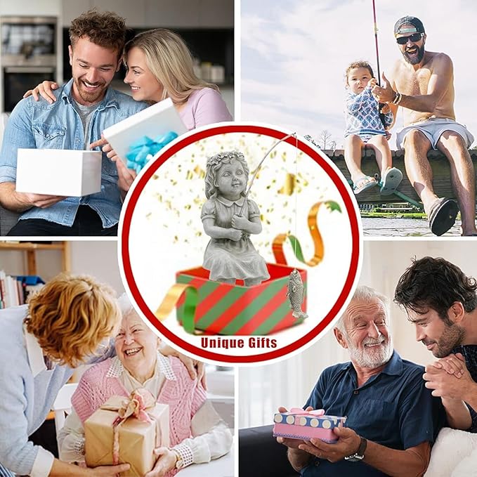 • Unique Design - Our Fishergirl has caught a wee little fish.Ready to pose on your pond edge. You will enjoy many laughs with friends, and family with his catch of the day on his fishing lure.