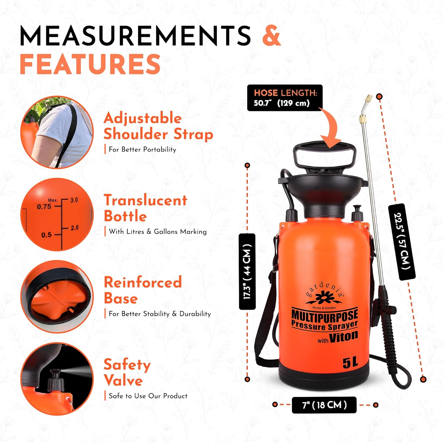 • **Effortless Pumping Action**: The state-of-the-art Manual High Pressure Pump Sprayer requires 30% less pumping & ensures consistent pressure retention for even & smooth Spray applications
