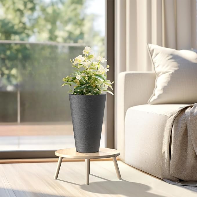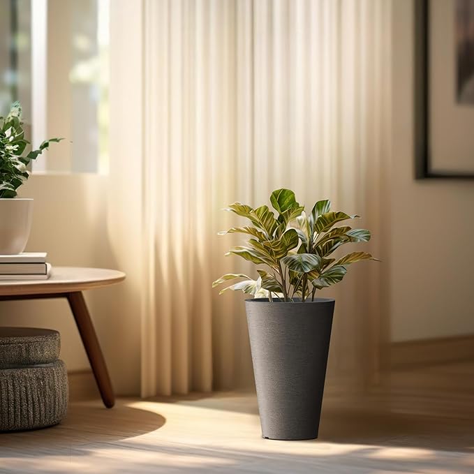 • Premium Tall Planters - Meticulously crafted with durable construction and superior workmanship, our planters are made from high-quality plastic, ensuring longevity, weather-resistance, and color retention. Whether utilized indoors or outdoors, these tall round planters are suitable for all seasons.