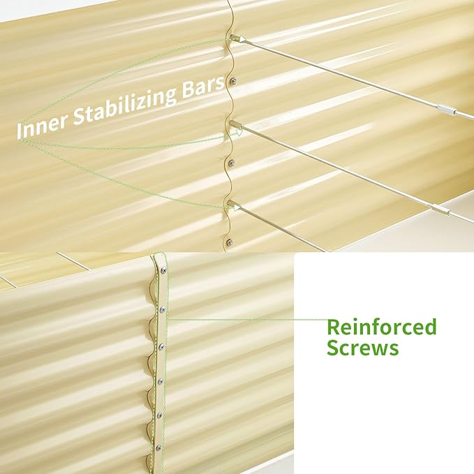 • 【Sturdy and Durable】The raised bed is made of thickened galvanized metal for strength and durability. The surface is coated with an upgraded powder coating for strong rust and corrosion resistance for long term use.