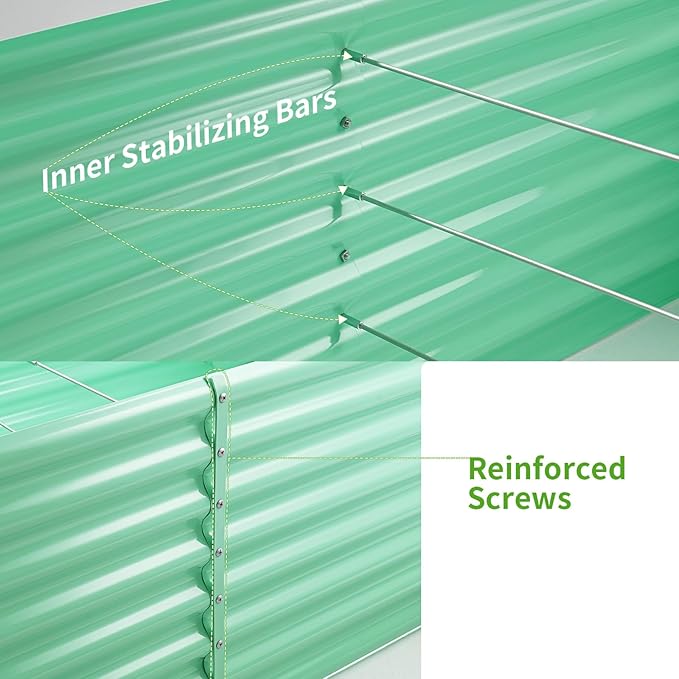 • 【Sturdy and Durable】The raised bed is made of thickened galvanized metal for strength and durability. The surface is coated with an upgraded powder coating for strong rust and corrosion resistance for long term use.
