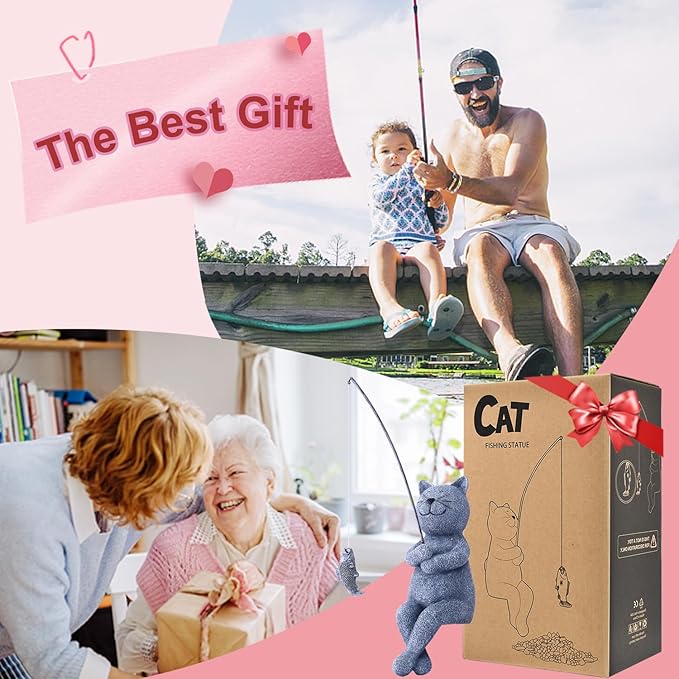 • 【Unique Design】: Our Fishing Cat has caught a wee little fish.Ready to pose on your pond edge. You will enjoy many laughs with friends, and family with his catch of the day on his fishing lure.