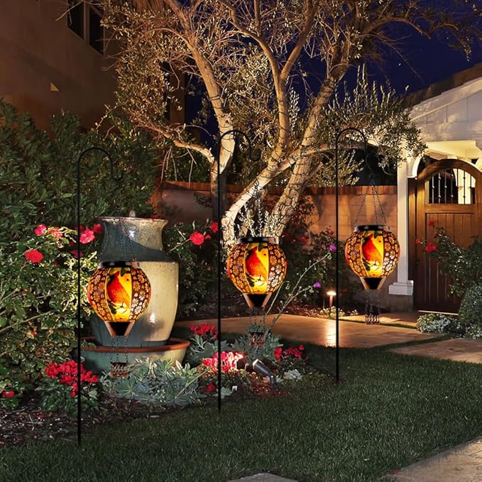 • Wide Application: The solar lanterns have a total height of 17.7 inches and a width of 5.9 inches. The moderate size makes outdoor lanterns for patio waterproof can be hung in various outdoor spaces such as gardens, patios, trees, etc. to add vibrancy and color to your outdoor space