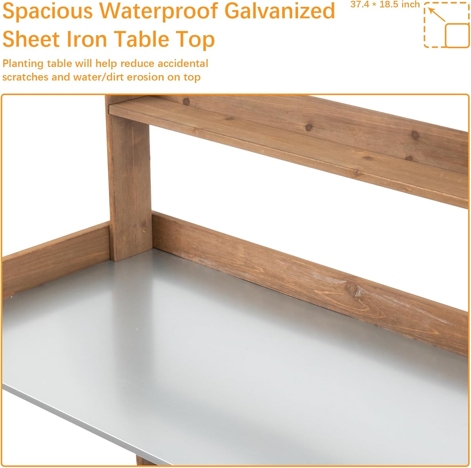 • 【Galvanized Metal Tabletop】Compared with wooden tabletop, the galvanized table of the work bench features better waterproof and durability. Just washing it with water or wiping it clean after use, which can provide enough convenience for your gardening work.With a sturdy galvanized tabletop that can hold up to 100 pounds, it can meet your gardening needs.