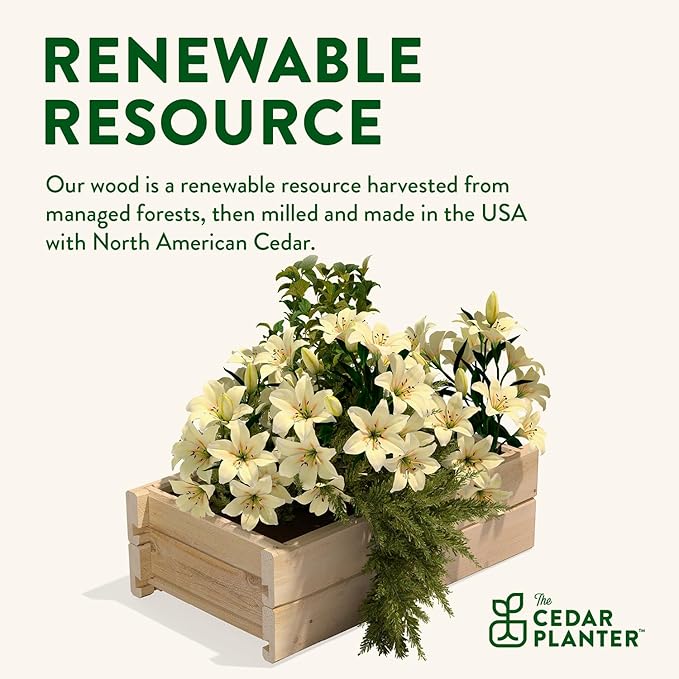 • SUSTAINABLY SOURCED AND MADE IN THE USA: our cedar wood is a renewable resource harvested from managed forests. The planter box is proudly made with North American Cedar by Greenes Fence Company, family owned and operated since 1976.