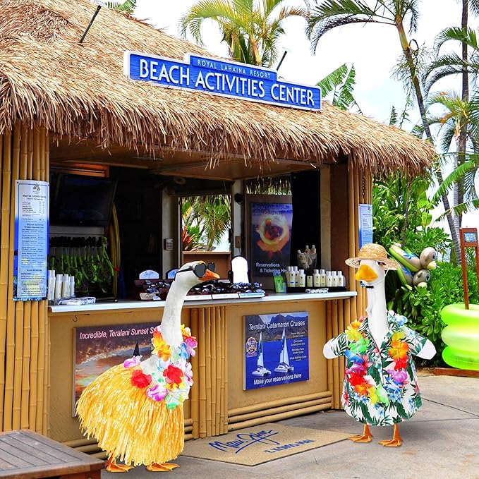 • Aesthetic and Stylish: featuring a delightful Hawaiian design in vibrant colors of green and yellow, the porch goose outfits are sure to draw attention and add a visually appealing detail to any lawn or garden; Dressing up your goose transforms ordinary lawn fixtures into eye catching garden centerpieces