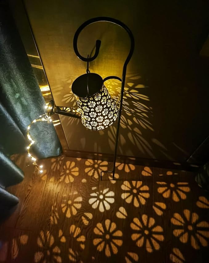 • 【Charming Garden Decoration Lights】: 2 watering can lights will be a charming addition to your patio at night, emitting bright lights that looks like strings of shining stars pouring out of a watering can, casting beautiful patterns on the ground for a romantic atmosphere. You'll love them when they light up your garden.