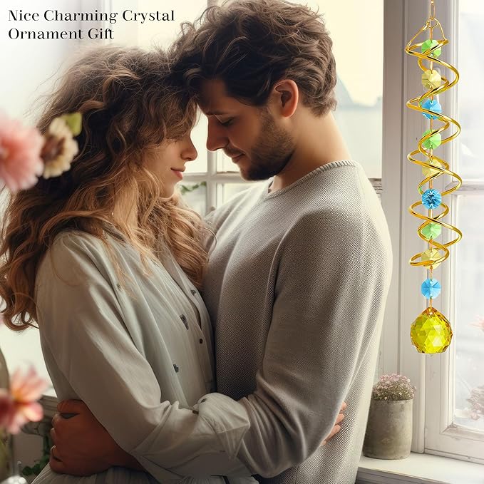 • Vibrant Yellow Crystal Glass Ball: Adorned with a 1.18 inch yellow crystal glass ball, this crystal suncatcher adds a pop of enchantment to any garden or patio.You can also add a motor(not include) to let the spiral to spin ,while spiral tail rotating (it can’t spin by itself)