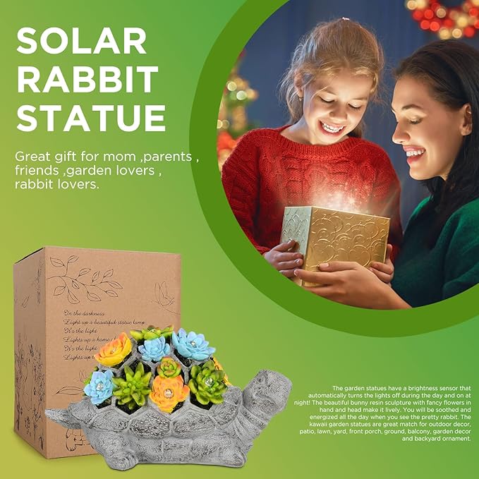 • 🐢【Unique Gifts Choice】The Turtle solar garden statue comes in his own beautifully designed box. A perfect choice as a gift for Mom/Grandma/Wife/Daughter/Sister/Aunt/Grandma,girlfriend/boyfriend, wife's wedding anniversary, child's birthday,mother's birthday, or Mother's Day, Father's Day,Thanksgiving Day,Valentine's Day and Christmas
