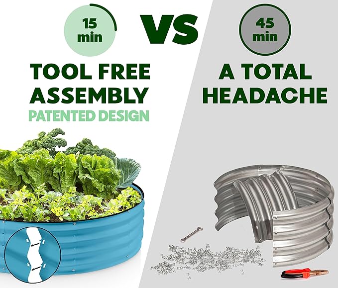 • EFFORTLESS ASSEMBLY, LIKE NO OTHER! Begin your planting journey by choosing our innovative patented design, featuring the perfect combination of easy assembly and durability. Thanks to our unique tool-free design, assembly is a breeze and can be completed in just 15 minutes! Get started on your garden right away and enjoy fresh, healthy produce in no time.