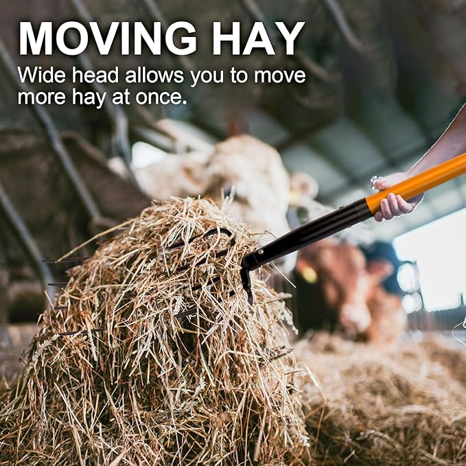 • Professional 5 Tine Pitchfork: The pitch fork can be used to move hay, manure, compost, and more, making it ideal for gardening in the yard or on the farm. The pitchfork for mulch head is 8.26 inches wide, and the wide head allows you to carry more hay at a time, helping you to be more productive!