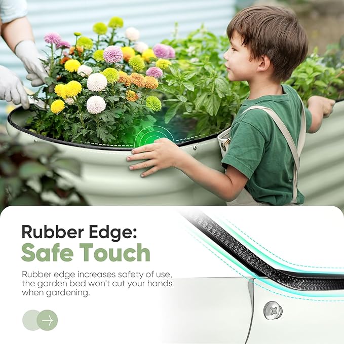 • 【Rubber Strip Edging】The edges of the raised garden bed kit feature a rolled design and are equipped with rubber strips to eliminate sharp edges. This ensures your hands won’t get cut during assembly and planting, allowing you to safely enjoy the pleasures of gardening.
