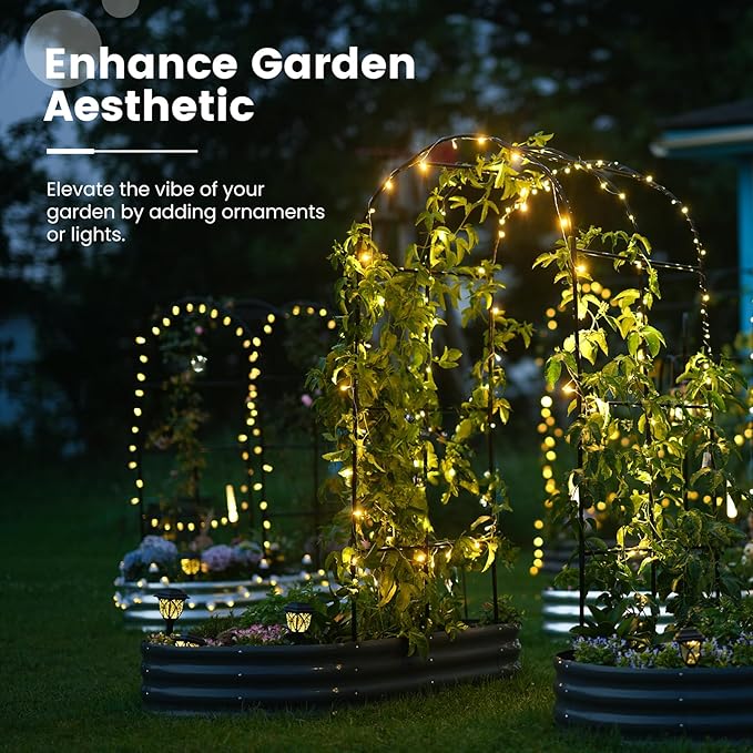 • 【Multifunctional Trellis】More than just a simple raised planter box, the trellis adds a realm of possibilities to your garden. You can hang small flower pots, decorations, and ambient lights on the trellis, or drape it with mesh or covers. As lush plants climb over the trellis, they also provide refreshing shade for your garden.
