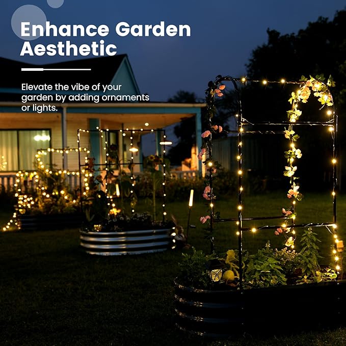 • 【Multifunctional Trellis】More than just a simple raised planter box, the trellis adds a realm of possibilities to your garden. You can hang small flower pots, decorations, and ambient lights on the trellis, or drape it with mesh or covers. As lush plants climb over the trellis, they also provide refreshing shade for your garden.