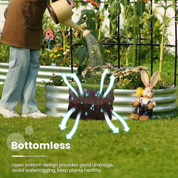 • 【Safe Rolled Edges】The edges of the metal planter raised beds are meticulously crafted with a rolled edge process, eliminating sharp edges to ensure your hands stay safe from cuts during assembly and planting, letting you safely enjoy the pleasure of gardening.