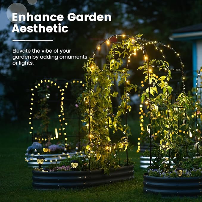 • 【Multifunctional Trellis】More than just a simple raised planter box, the trellis adds a realm of possibilities to your garden. You can hang small flower pots, decorations, and ambient lights on the trellis, or drape it with mesh or covers. As lush plants climb over the trellis, they also provide refreshing shade for your garden.
