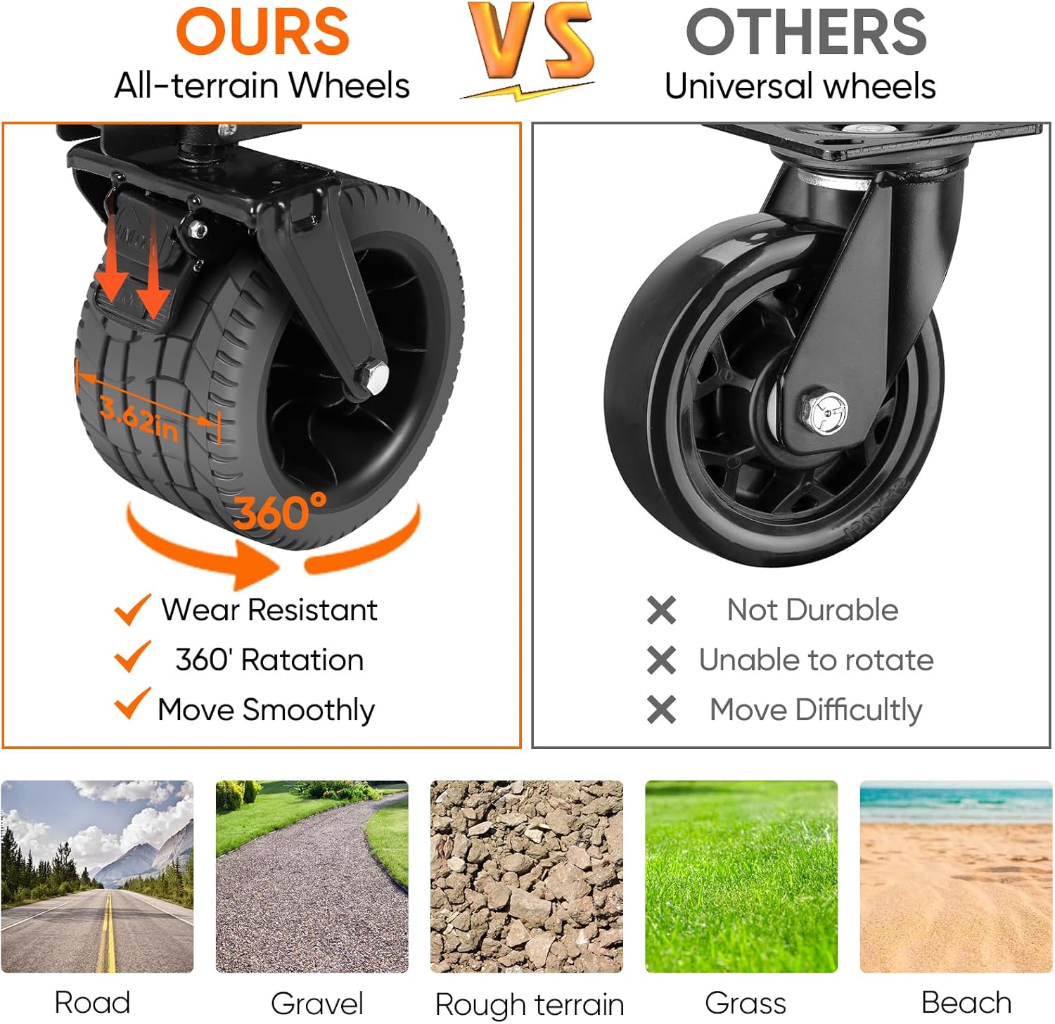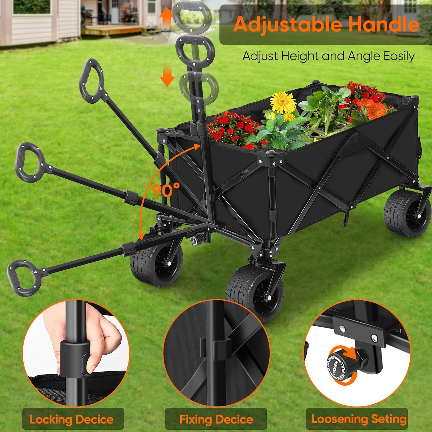 • 【Extra Wide All Terrain Wheels】Our wagon is equipped with 6.5" diameter all-terrain wheels, ensuring a smooth ride on navigating diverse terrains.360-degree freely rotating front wheels are equipped with brakes to accommodate wild terrains, providing excellent anti-slip performance for a smooth pull and easy transport. The foldable wagon cart is equipped with adjustable handles, you can choose to adjust them according to your needs