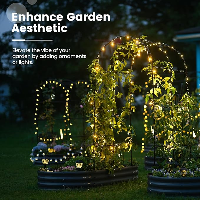 • 【Multifunctional Trellis】More than just a simple raised planter box, the trellis adds a realm of possibilities to your garden. You can hang small flower pots, decorations, and ambient lights on the trellis, or drape it with mesh or covers. As lush plants climb over the trellis, they also provide refreshing shade for your garden.