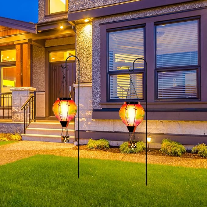 • 【Wide Application】Hot air balloon solar lantern equipped with "S" hook, easy to hang. 2PCS solar hot air balloon lanterns can be hung in the garden, yard, party, patio, lawn, porch, tree, pergola, balcony or windowsill. Whether it's day or night, solar hot air balloon lanterns with flame can add color and charm to your home.