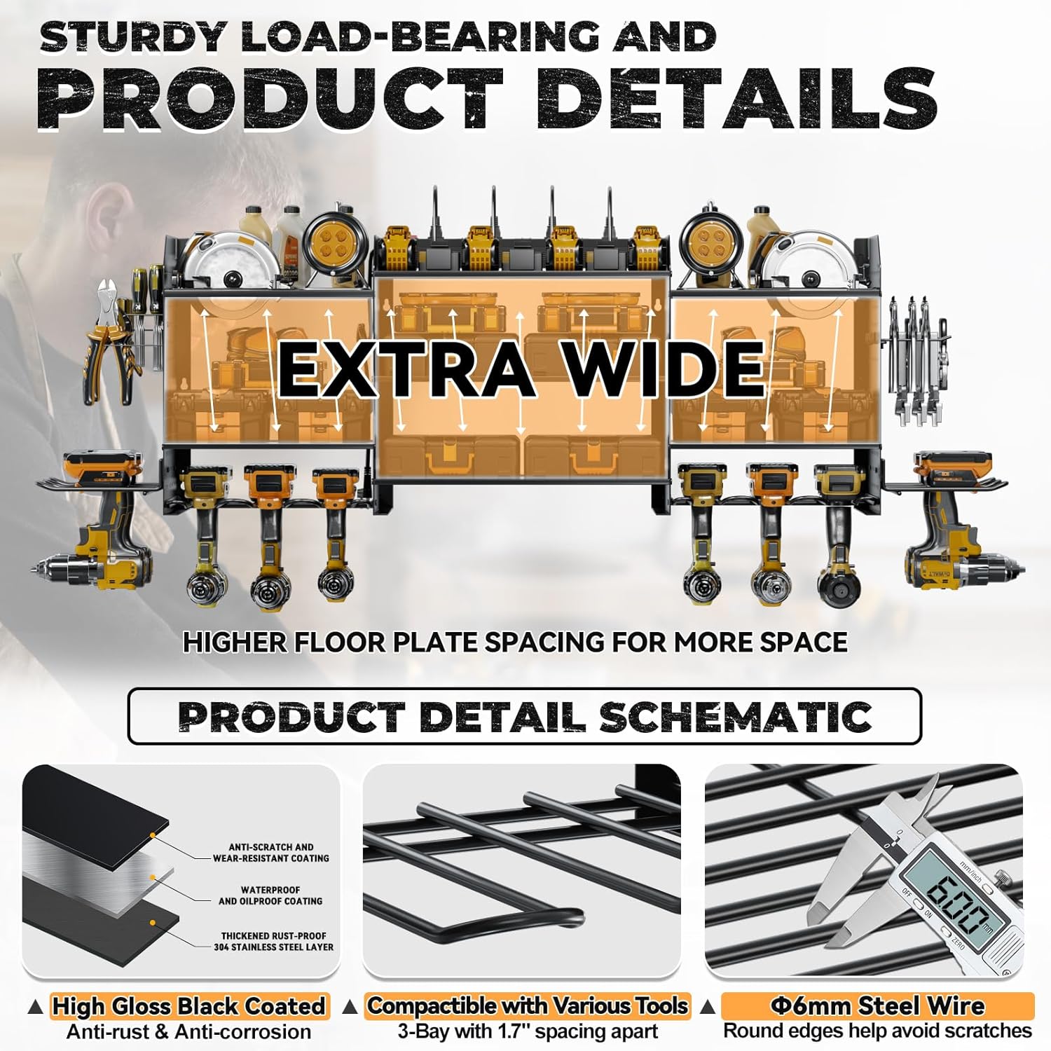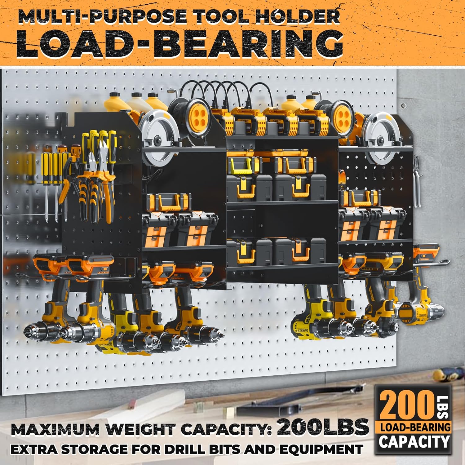 • [Perfect Garage Companion]Utilizing wall-mounted installation, this power tool rack maximizes unused wall space, saving time in tool retrieval. Ideal for garages, homes, workshops, sheds, backyard shops, and more, it offers suspended tool organization and storage.