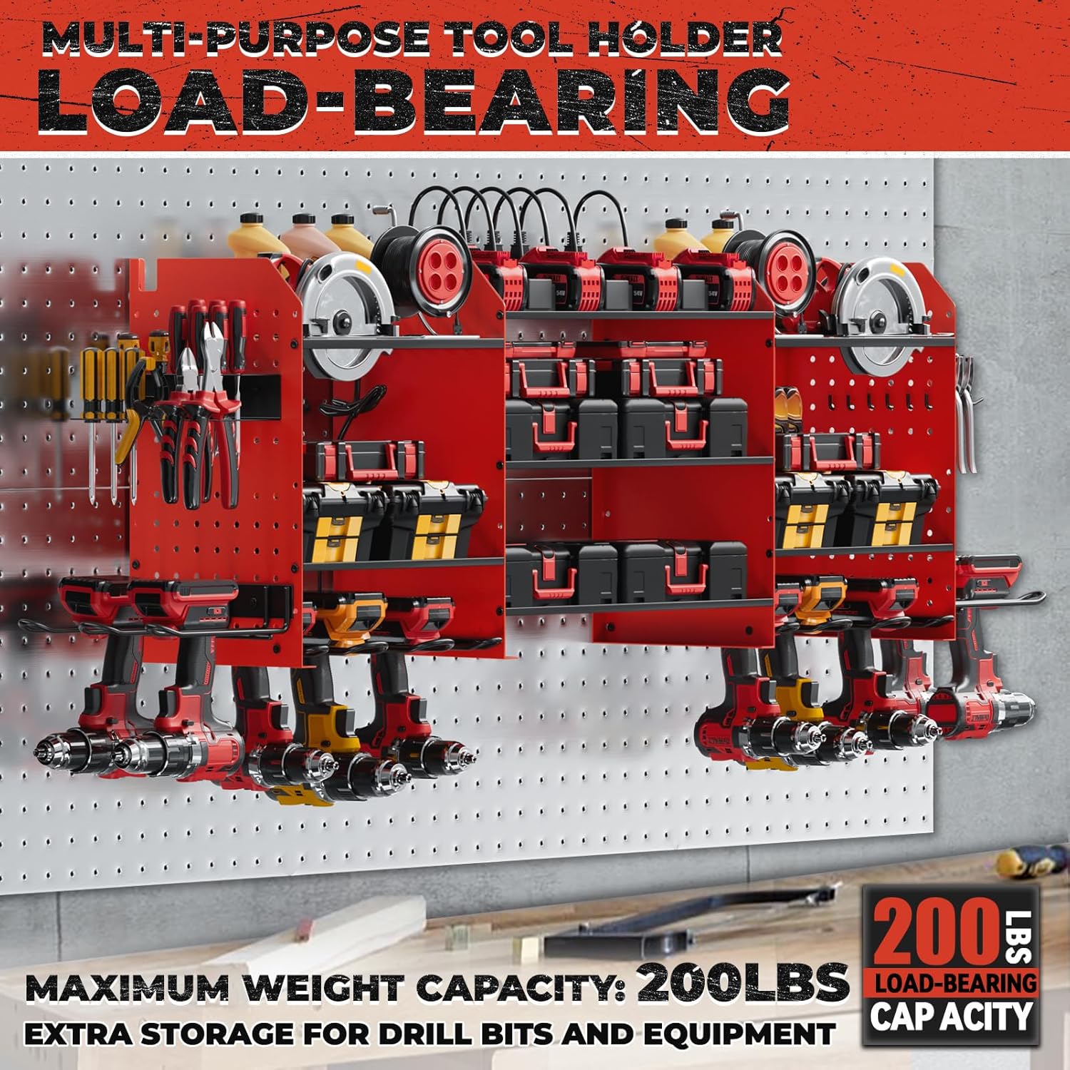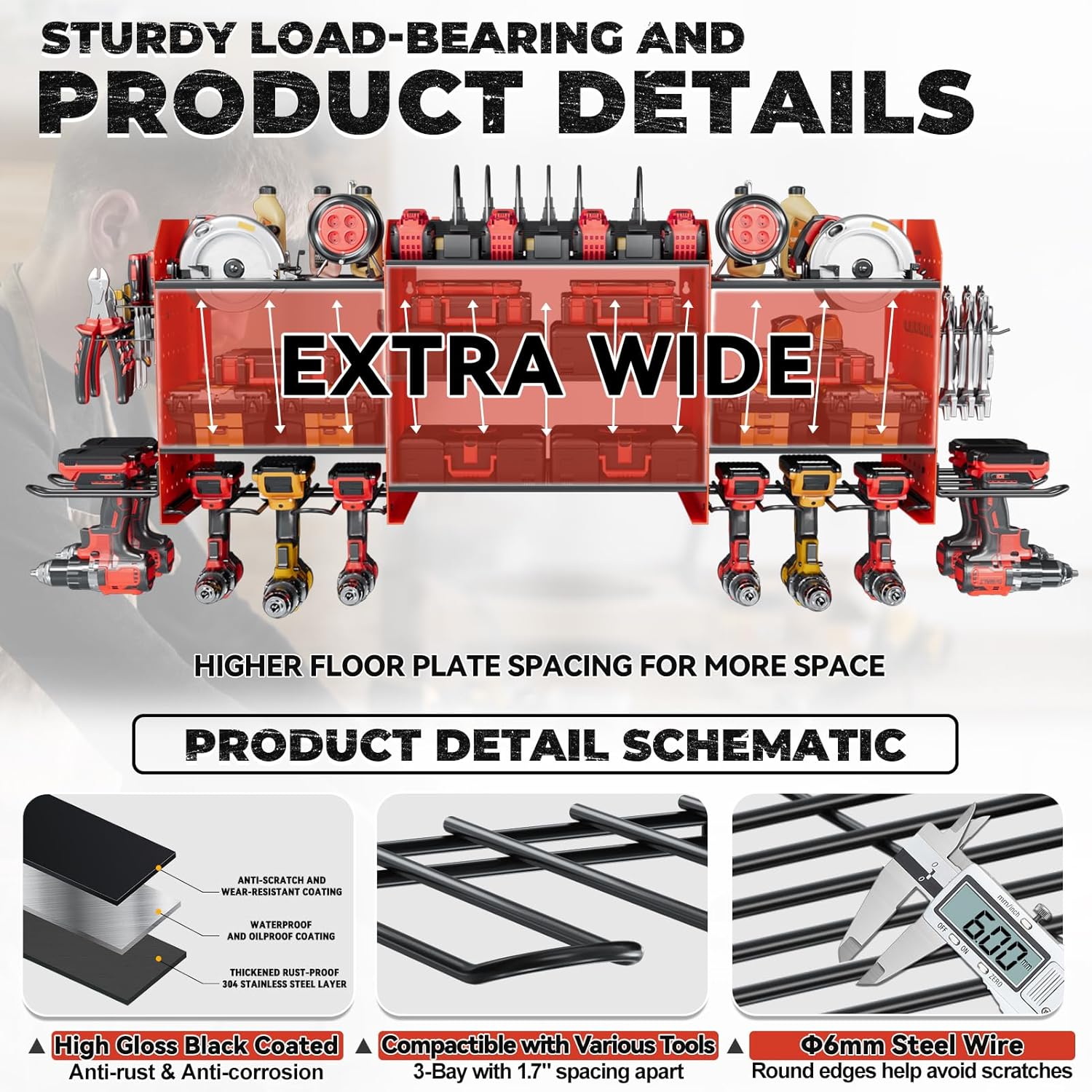 • [Perfect Garage Companion]Utilizing wall-mounted installation, this power tool rack maximizes unused wall space, saving time in tool retrieval. Ideal for garages, homes, workshops, sheds, backyard shops, and more, it offers suspended tool organization and storage.