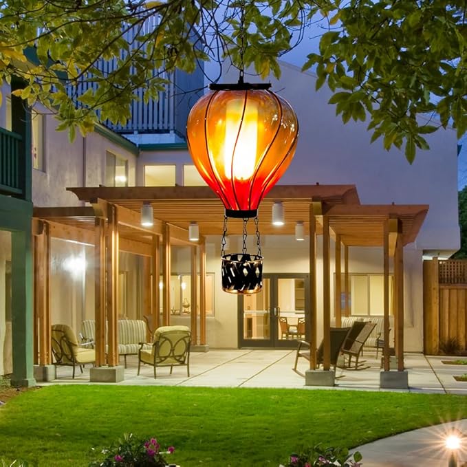 • 【Wide Application】Hot air balloon solar light is a great home decoration, both indoors and outdoors, you can hang the solar lantern on porches, trees, pergolas, balconies, or ledge. You can enjoy its unique, bright appearance during the day, and when the flickering flame lights up at night, it is a different scene.