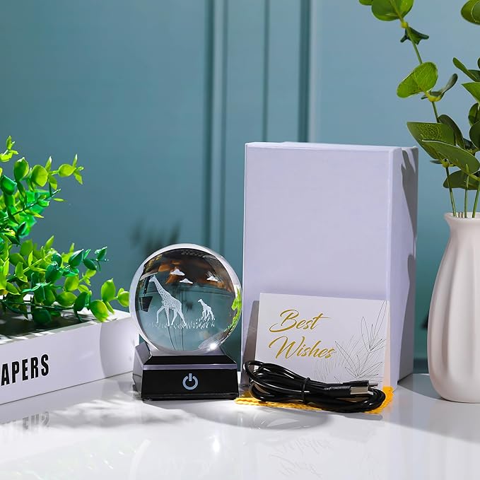 • 🍀Crystal Ball Giraffe Gifts - Crystal Glass Giraffe Figurine Decor size: 3.14". Made of HIGH-QUALITY K9 Crystal, Interior images are carved by Advanced 3D Laser Engraving Technology, nice Giraffe Gifts for mom on XMAS Mothers Day