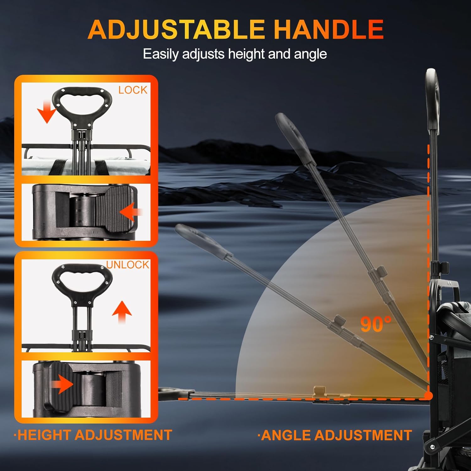 • All-terrain wheels & brake:AMNOW beach wagon have 7.9" diameter big all-terrain wheels suitable for all terrain ground, a good helper for your picnic and camping,Our wagon cart has a brake design on the front wheel, and you can easily control it even on slopes