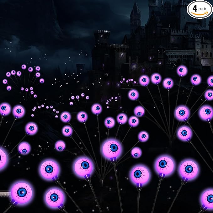 • 【Upgraded Halloween Decorations】 Elevate your Halloween solar garden lights with our 3D designed swaying eyeballs! The realistic solar eyeballs, combined with a spooky purple/green light glow, create an eerie atmosphere which are perfect for the season. These eyeball swaying firefly lights ensure you scare your neighbors and passersby. Light up your Halloween with these haunting decorations!