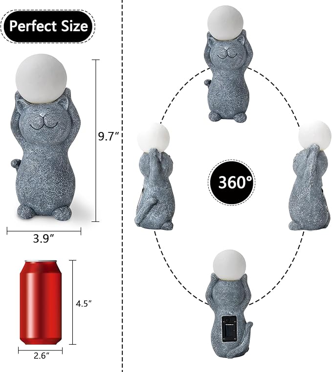 • Add vitality to your outdoor space - This outdoor decor light adopts exquisite artistic design, is not only a great art, but also a practical lighting tool. The image of the cat is cleverly integrated into the lamp, whether as a garden decoration or night lighting, both can create a magical and warm atmosphere