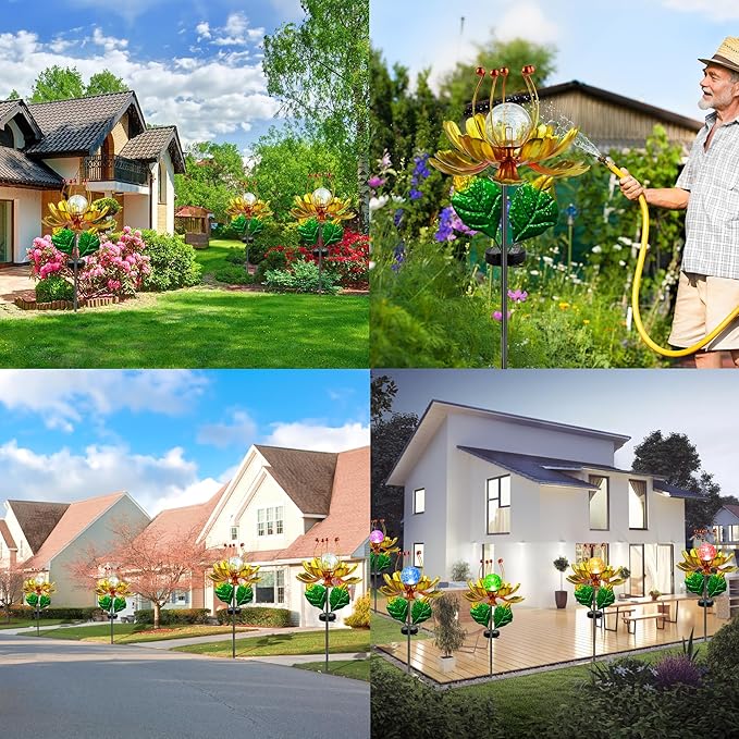 • 【 Solar Wind Spinners Outdoor 】Purple lotus flower lights wind spinner using waterproof LED burst spherical glass flower lights.It is beautiful and cute, it can decorate any place in the garden, it is beautiful during the day and at night, you can easily place and move it to any place you like!