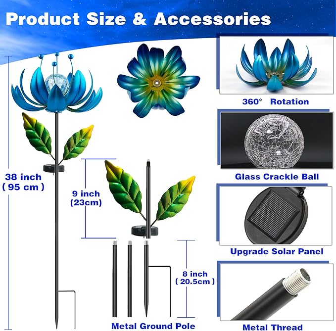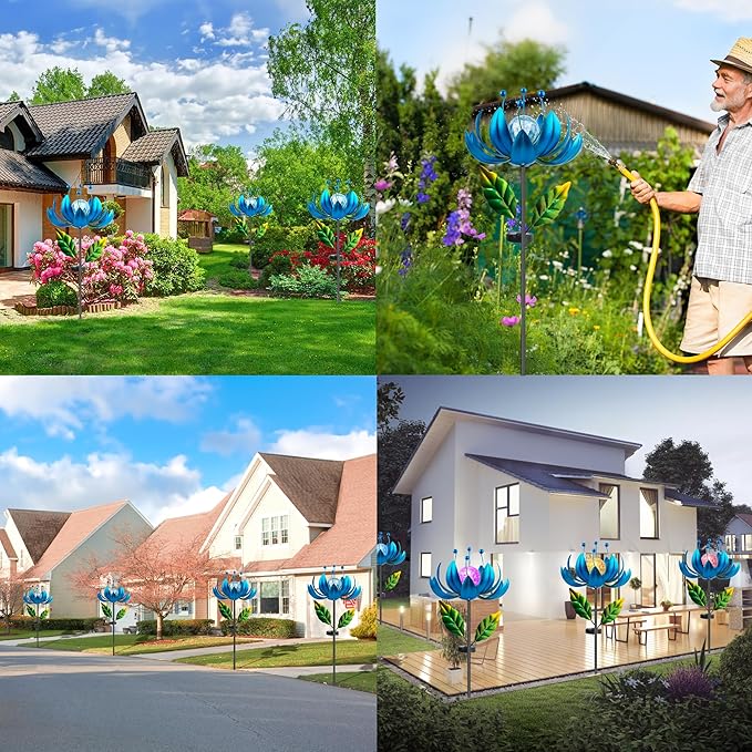 • 【 Easy to Install 】Wind Spinner Outdoor Metal is very easy to install, just twist all the accessories to install. The metal pole, the angle of the petals can be adjusted, you can also adjust the length of the pole and the degree of bloom of the flowers.