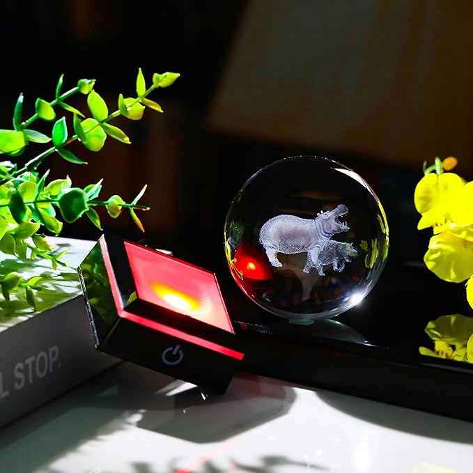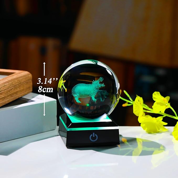• Crystal Ball Hippopotamus Gifts - Crystal Glass Hippo Figurine Decor size: 3.14". Made of K9 Crystal, Interior images are carved by Advanced 3d Laser Engraving Technology.