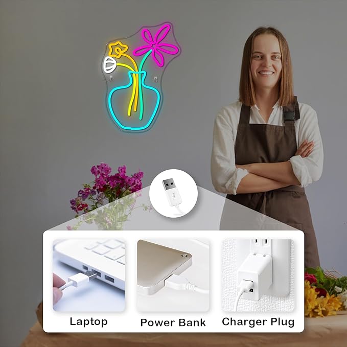 • Premium Craftsmanship:Crafted with precision and care, our cute flower light up neon sign exemplifies superior craftsmanship and attention to detail. Each component is expertly crafted from high-quality materials, ensuring durability and longevity. From the delicate petals of the flowers to the graceful curves of the vase, every aspect of the design reflects the highest standards of quality and artistry.