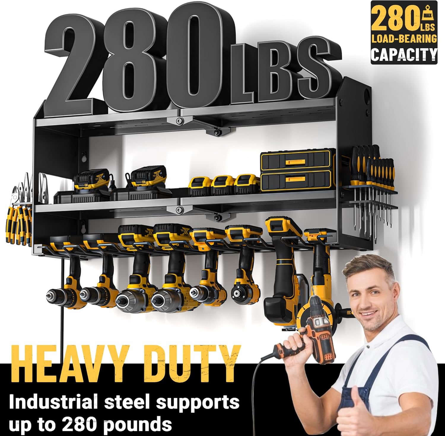 • 【HEAVY DUTY & DURABLE】:Our drill rack is made of industrial-grade steel and equipped with high-quality mounting screws, with a total load-bearing capacity of up to 280LBS. The durable black powder coating prevents rusting and lasts a lifetime.