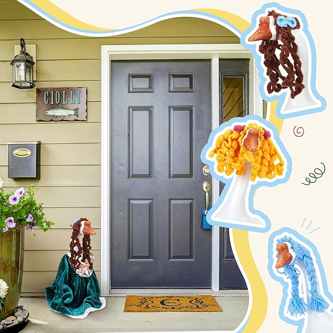 • Porch Goose Accessories: elevate your outdoor decor with our porch goose braid wigs, offering 3 charming styles to adorn your porch goose, garden goose, or lawn goose; Each wig features delightful braids, cute bows, or wavy designs, adding whimsy and personality to your outdoor space