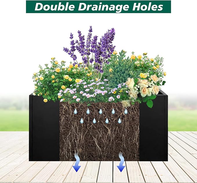 • [ Black Rectangular Planter] Galvanized planter box is made of galvanized steel with black powder coating. Galvanized Steel Planter is wear-resistant, corrosion-resistant and long lifetime.