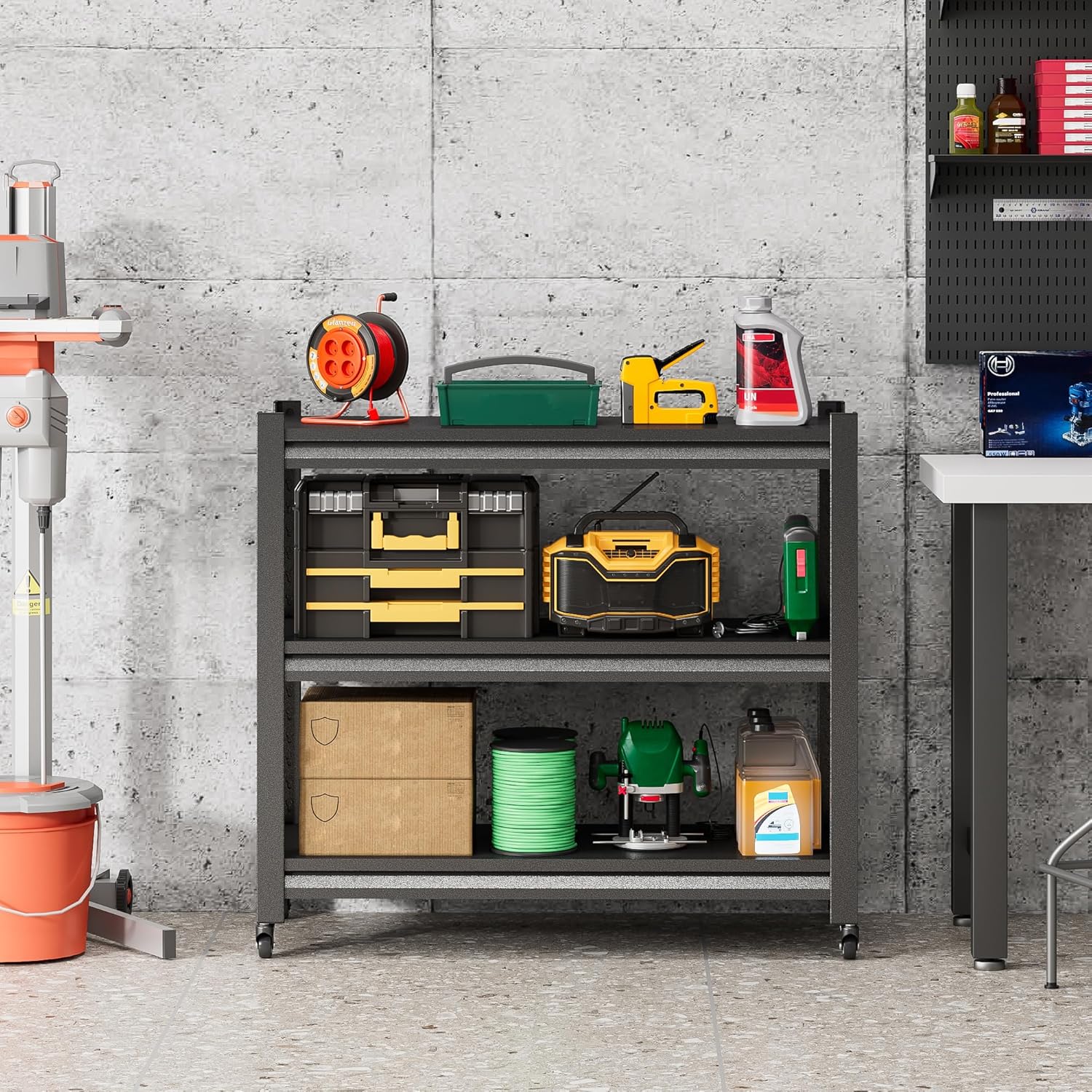 • 【Anti-Rust & Multi-Function】Optimized and upgraded metal workbench features 3-tier dividers. You can customize the shelf layout and use your imagination to customize your space. This workbench offers flexibility with its upgraded metal wheels. With four lockable wheels, effortlessly roll it around both indoor and outdoor spaces.