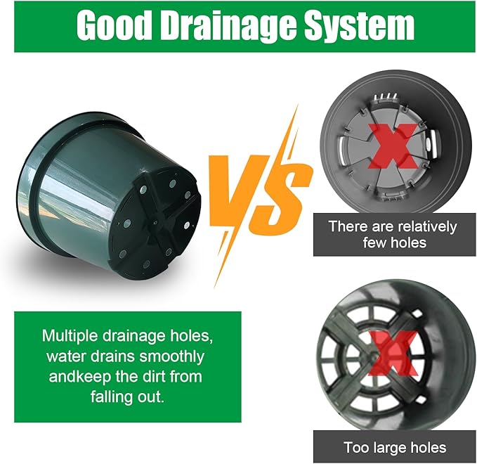 • 【Enhanced Survival Rate】The bottom of plastic pots is equipped with 8 large drainage holes. Which theses can discharge excess water well, improve the bottom ventilation and drainage. As well as improving the survival rate of seedings and plants.