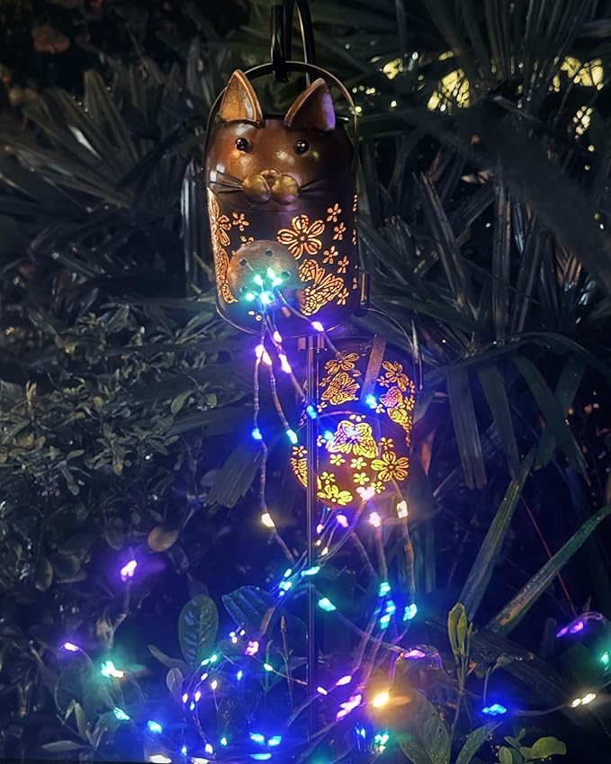 • Upgraded Colorful Solar Watering Can: Elevate your outdoor ambiance with our multicolored Cat-shaped hanging solar lantern featuring 8 light modes and 4 color LED strings, casting a starry glow as if pouring out a constellation. The warm yellow light filters through the exquisite cut-out design, creating a cozy and artistic atmosphere for memorable nights with family and friends